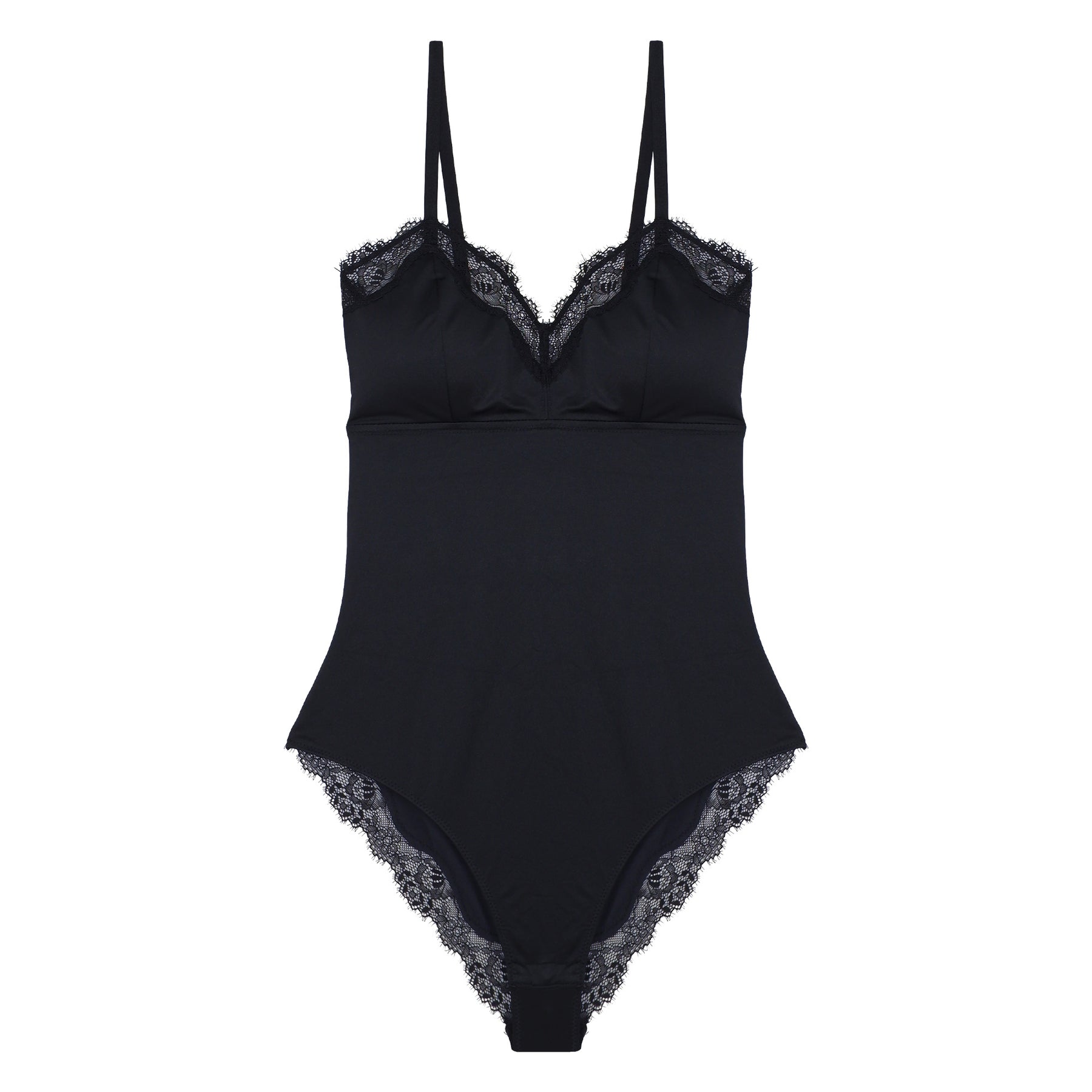 Erica Bodystocking in black is crafted from soft stretch satin ensuring ultimate comfort. This classic bodystocking features a delicate lace trim that adds a feminine and romantic touch, with removable padding for customizable comfort. Match with Erica String or Erica Briefs for a complete set.